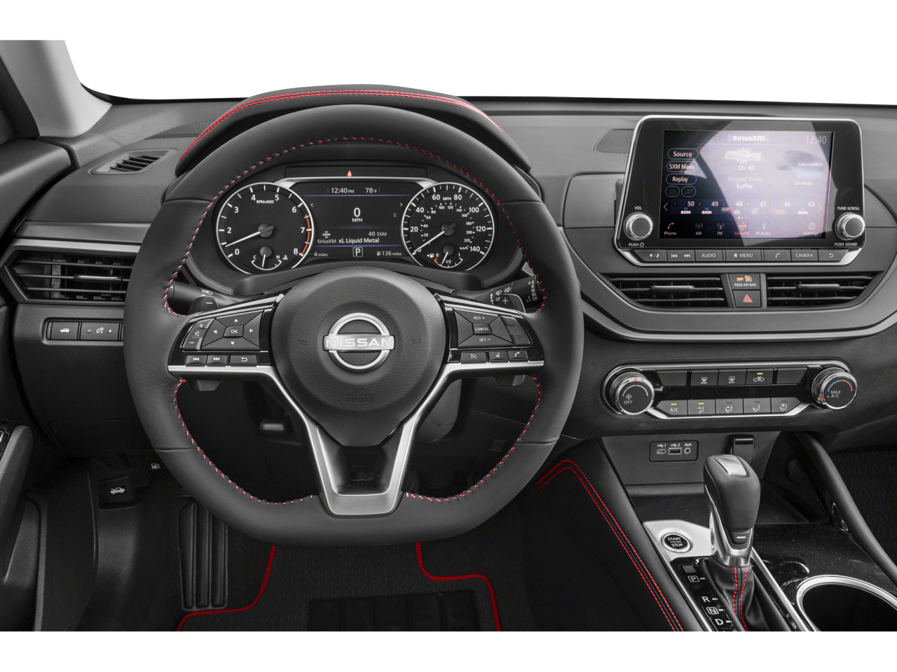 Inside, the Altima's spacious cabin is appointed with premium materials and thoughtful features. Sink into the supportive sport bucket seats and enjoy the convenience of power driver's seat, steering wheel-mounted audio controls, and dual-zone automatic climate control. The NissanConnect infotainment system with Apple CarPlay and Android Auto integration keeps you connected and entertained on the go.